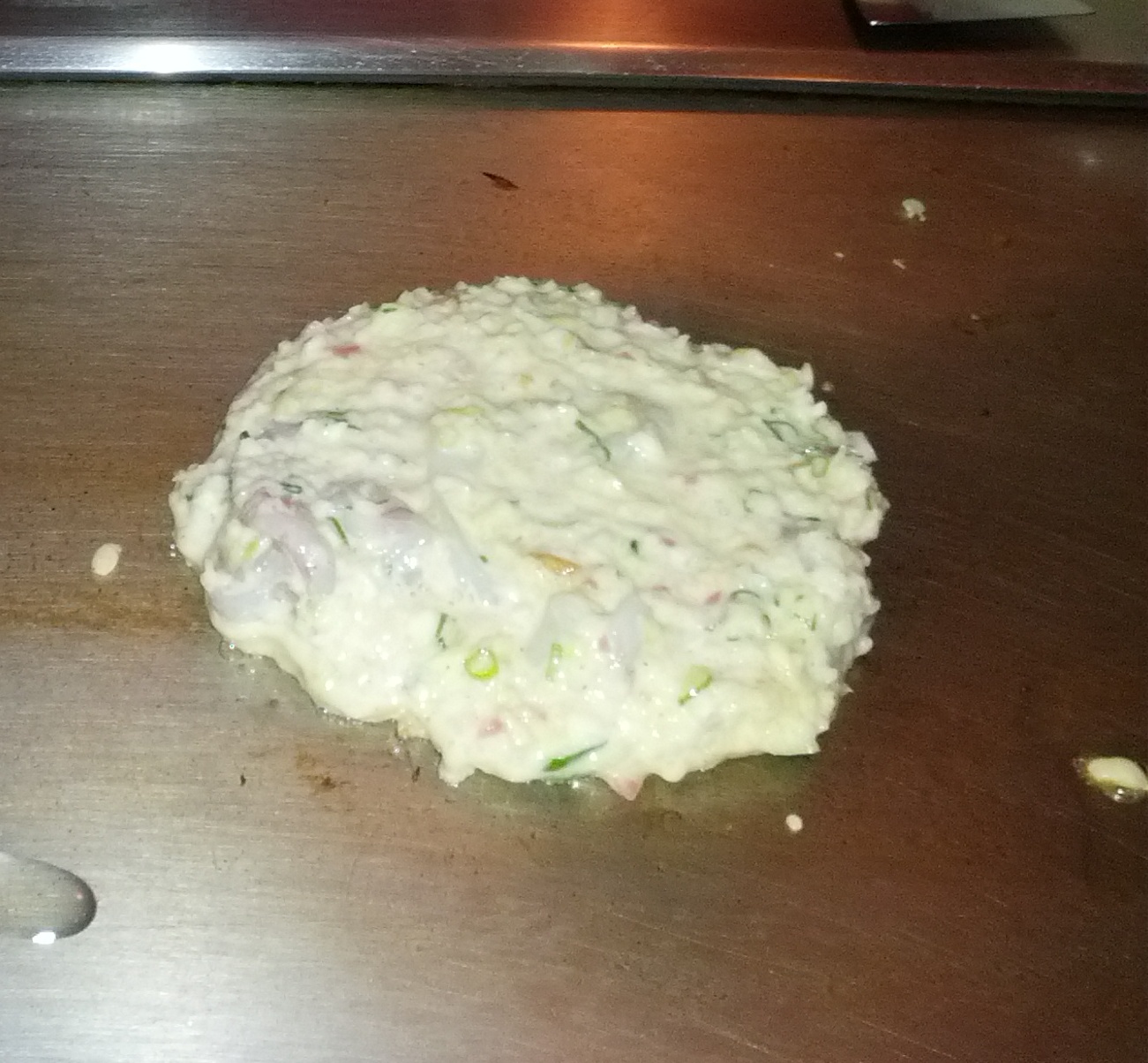 I guess it’s best to think of this cooking as a kind of pizza or a glorified savoury pancake. There are many different well established fillings or toppings that reflect different cities and areas in Japan.