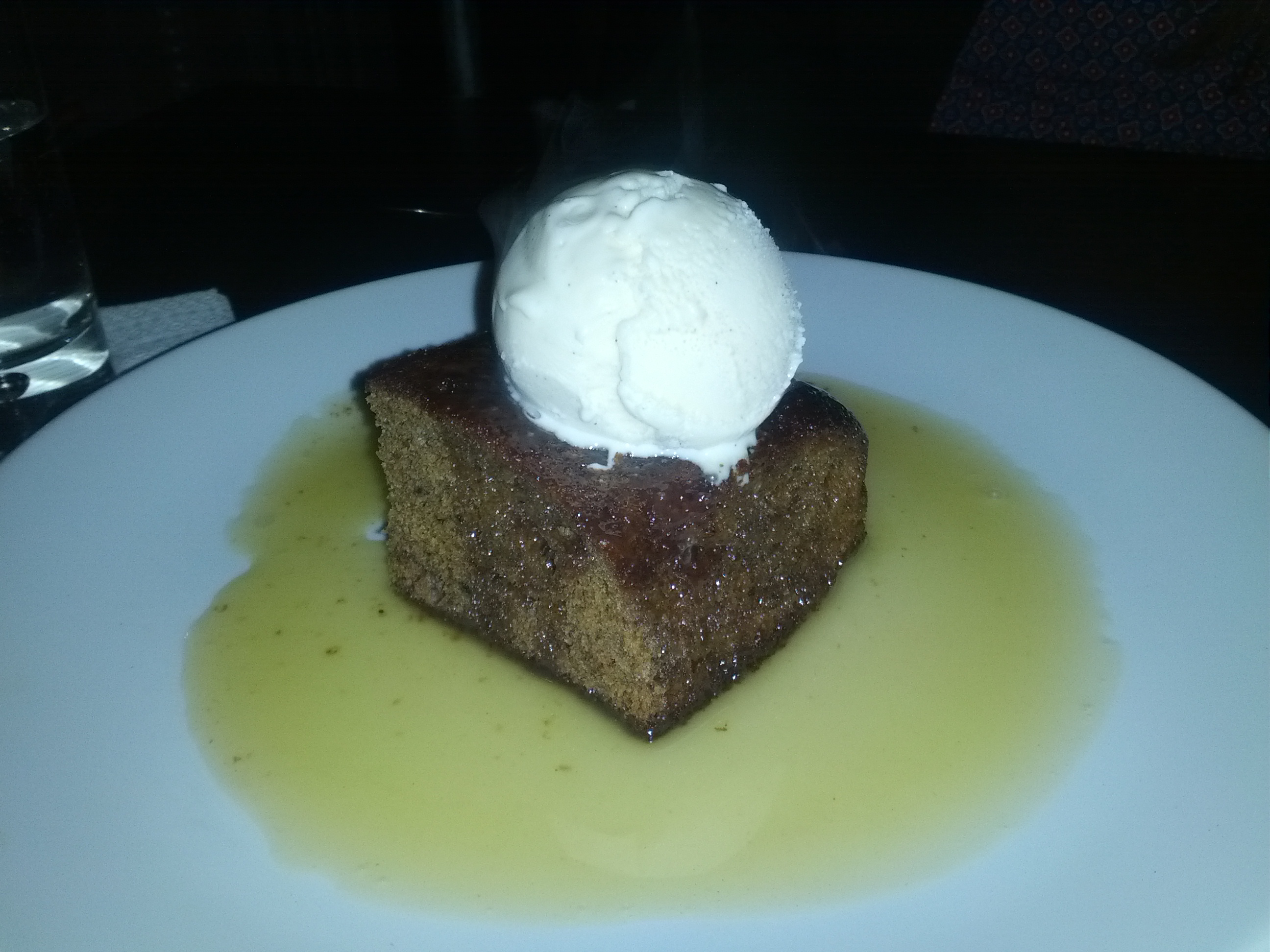 Moving onto the desserts, we were admirably full so just went for a shared dessert – nevertheless we went for a slice of richness going for the Sticky Toffee pudding – rich it was but damn it was good. Sweet, tantalisingly moreish and ‘plate-lick-able’.