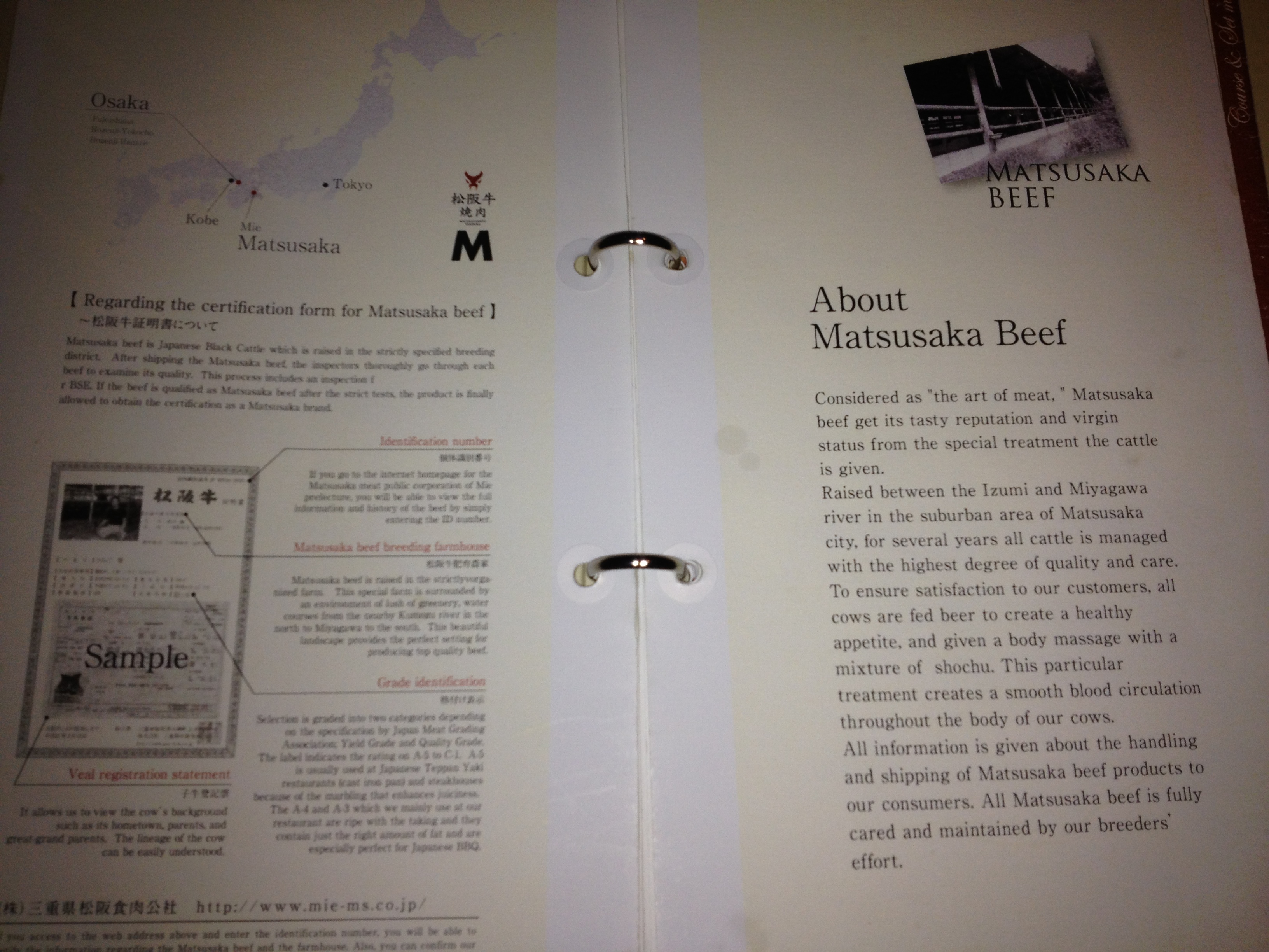 The main focus in question is Matsusaka Beef, one of the 3 main Wagyu varieties the most famous being Kobe beef of course. We were recommended a few options, but the one we went for was the second priciest set meal (Special Course) which promised to give a thorough overview of all the cuts they had on offer.