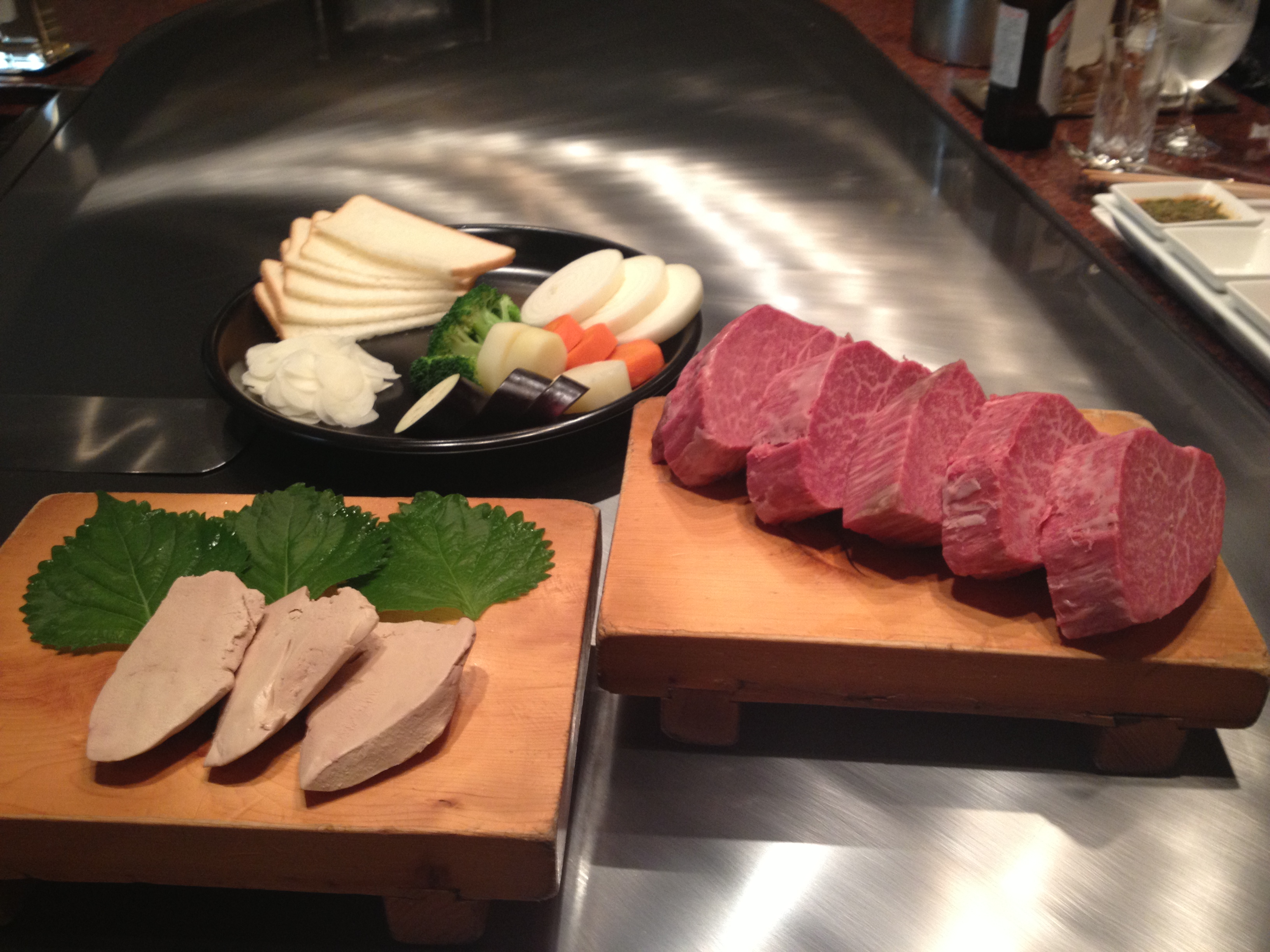 led to one called Biftek Kawamura. Apparently this restaurant only gets award winning beef at auction, and is one of the most highly rated anywhere in the country. Rare treat indeed. The auction quality beef accounts for only a minor percentage of all Kobe beef sold by all accounts.