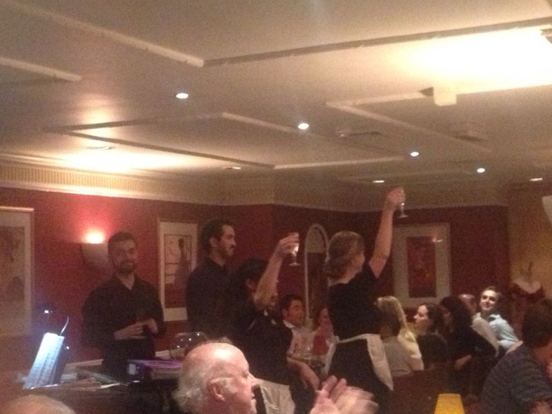 One minute you’re being greeted by them at the door; the next they’re taking your coat away and giving you a stub for it, then guiding to your table, serving you drinks, and bringing your food all with smiles and politeness a plenty… but beyond these tasks that make a patron feel welcome the final element of what these excellent hosts do is Sing!